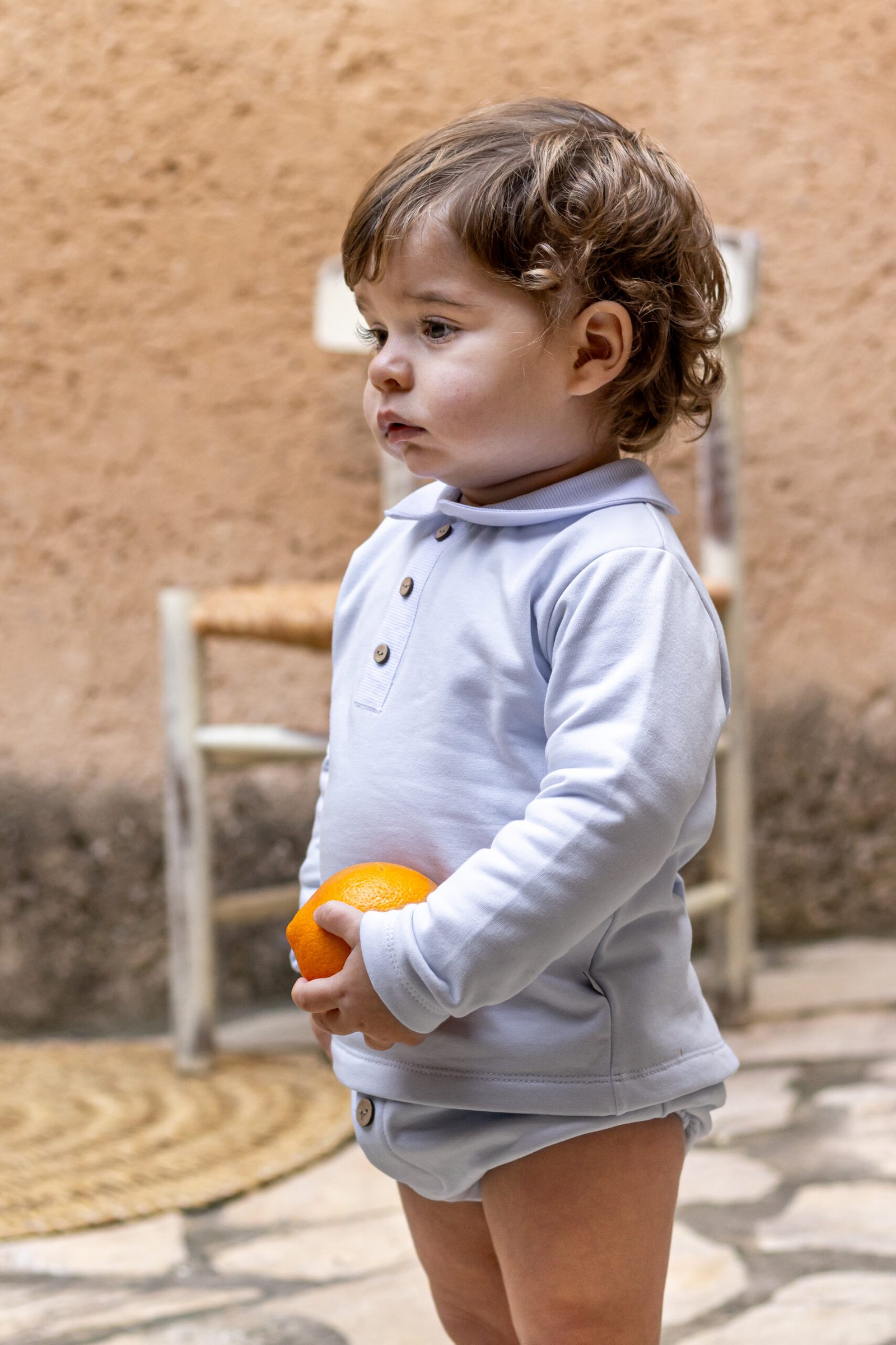 Conjunto pololo Lechebe de bebé niño, formado por jersey y pololo a juego en color celeste de de la colección Otoño-Invierno 2025/2026 de Calamaro Baby