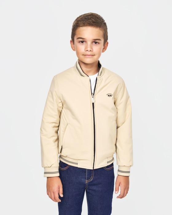 cazadora de niño de la marca canada Spagnolo, cazadora reversible en color azul marino y beig.