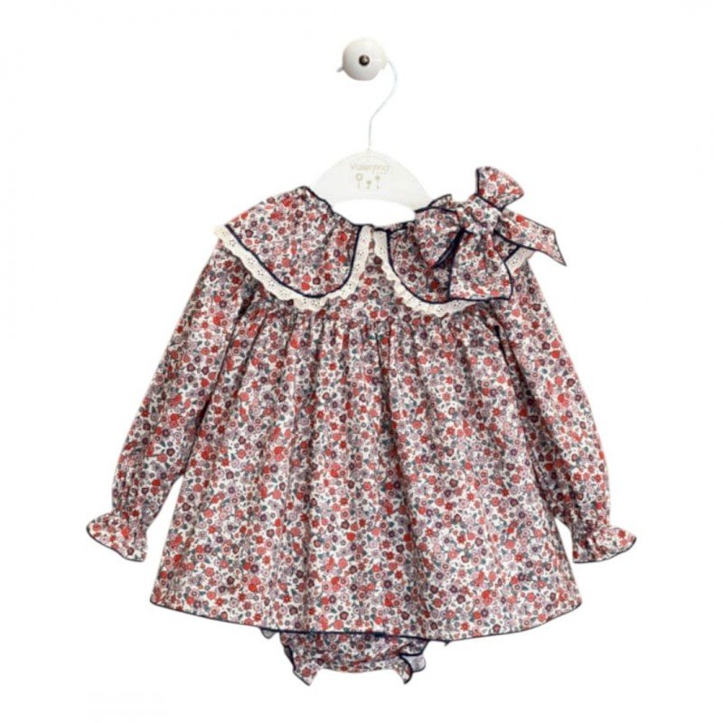 Jesusito borgoña formado por jesusito y braguita 2 piezas de algodón color borgoña con estampado de flores, cuello bebe con lazo, y braguita a juego confeccionado en un material suave y cálido. de la colección de Otoño-Invierno 2025-2026 de Valentina bebés.